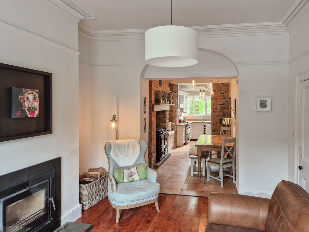 Living Room 1: Ground floor, TV with Netflix and Youtube, wood burning stove, open plan with dining table and kitchen