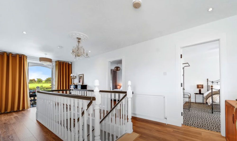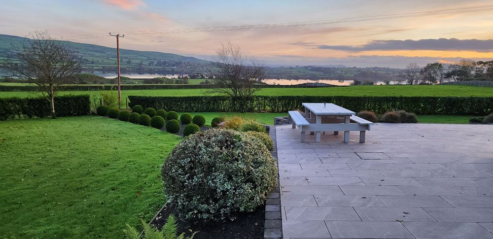 Pocket doors through the reception room lead to a nice conservatory where you can soak up the sun, enjoying views of the river Foyle. Glass doors from the conservatory lead to a patio area at the back. The bright, modern, well-appointed kitchen and dining area overlooks gardens with glass French doors leading to striking water views and the large patio area aesthetically furnished for a beautiful evening meal, or just cocktails at sunset.