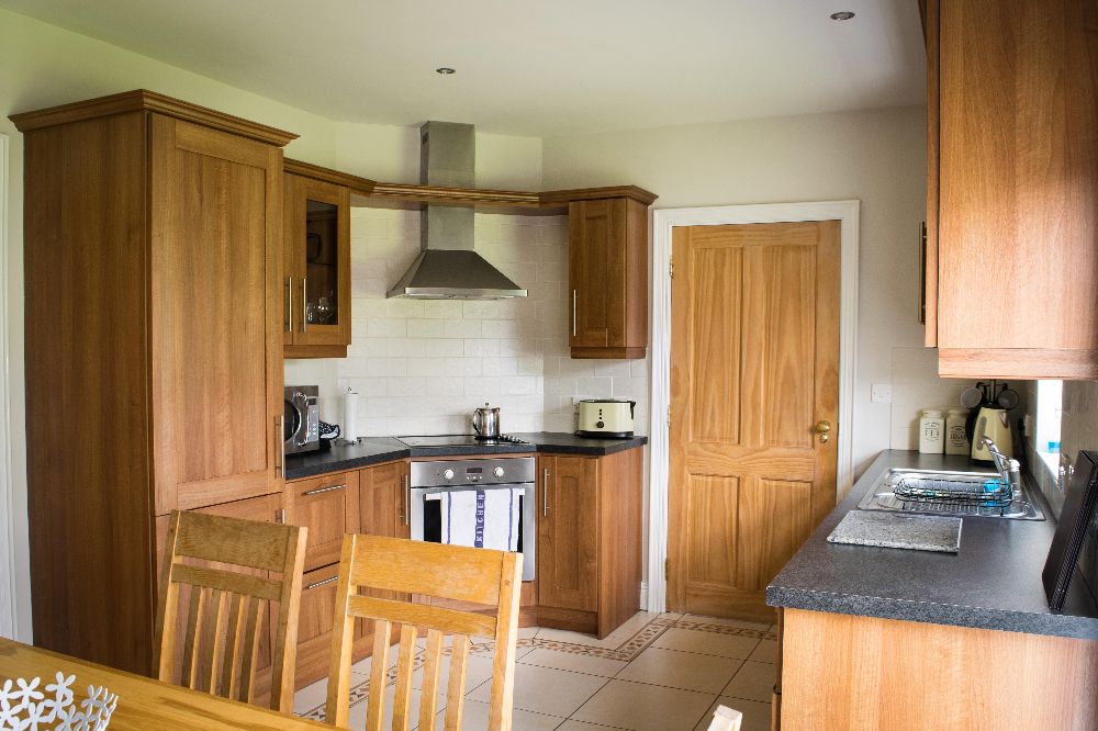 This holiday home has a tastefully decorated and furnished living room. It features a cosy wood burning stove and a natural wooded floor. The smart TV contains all entertainment apps such as Netflix. There is also a dvd player or free WIFI if you prefer to browse your smart phone/tablet. Double doors lead to the patio area which has outdoor furniture and a charcoal BBQ.