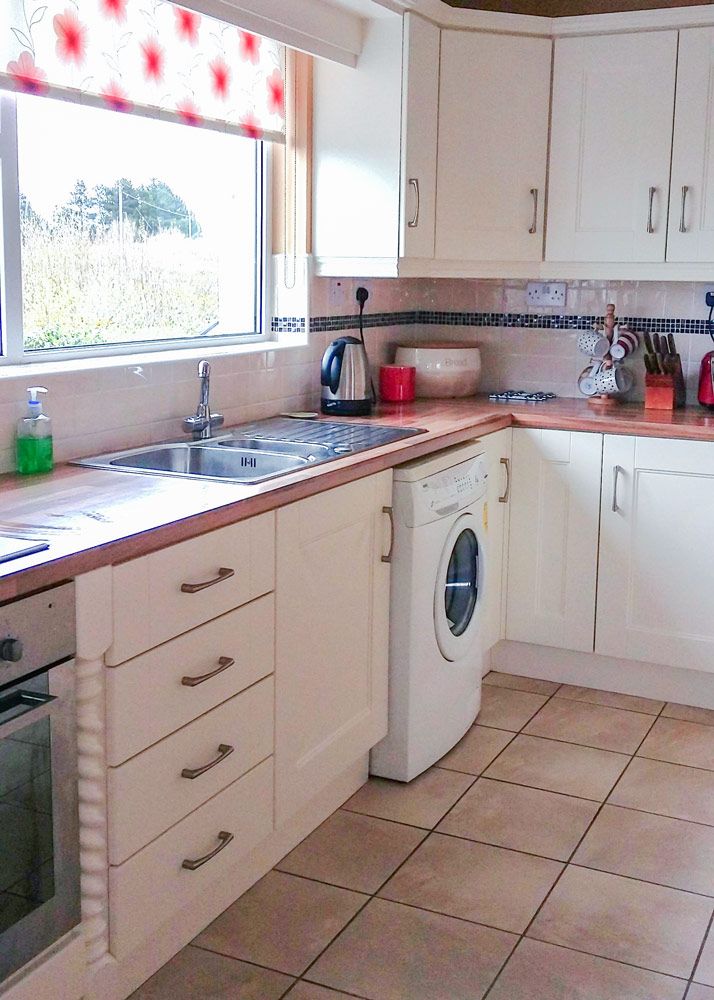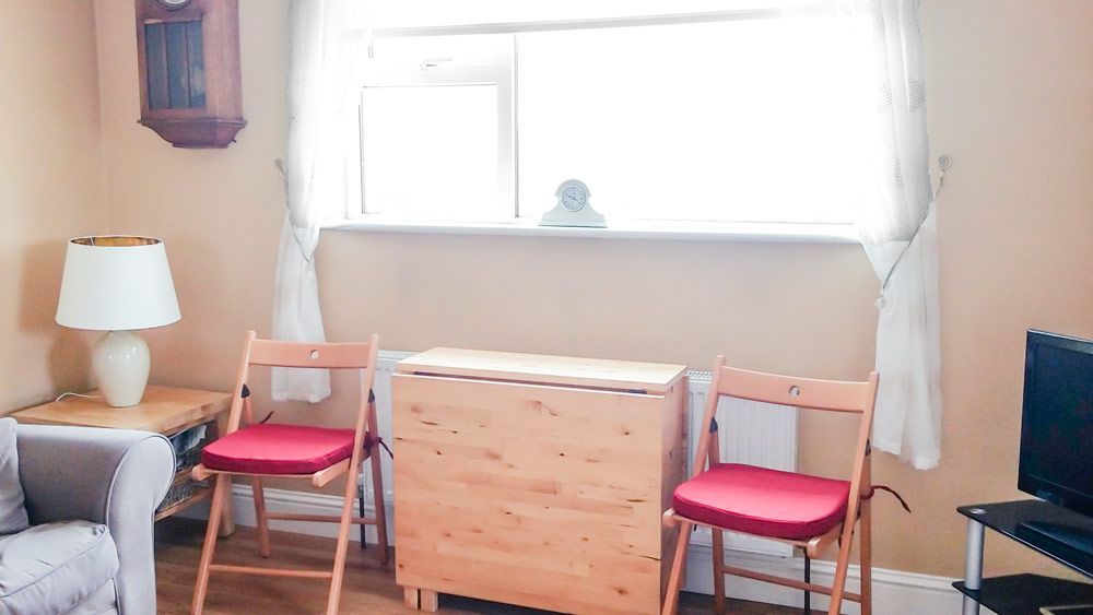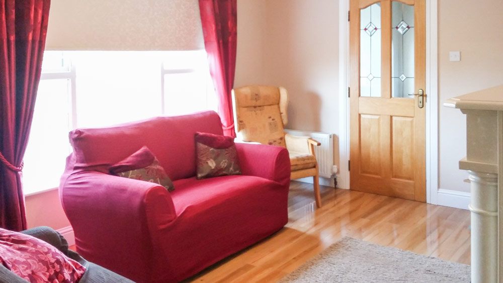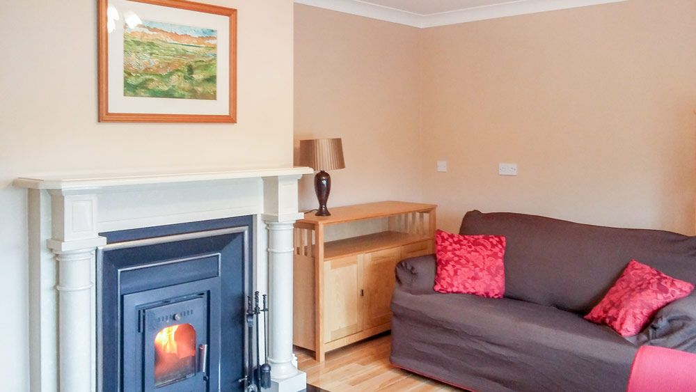 The holiday home has a lovely comfortably furnished living room with a wood burning stove. It has a tv with saorview as well as a DVD player. A selection of board games and library are also available.