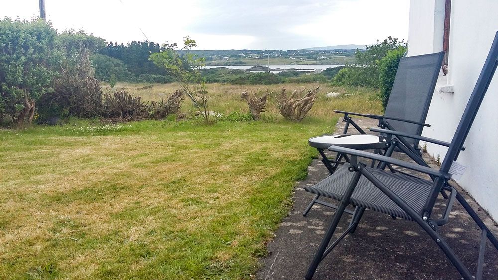 Eamonn's Cottage is situated on a large property two and a half kilometres to the north of Annagry, set in a quiet and peaceful location. There are sea views from the side and rear gardens. It is south-facing, on an elevation overlooking a pleasant rural landscape and looking westwards to Donegal Airport on the Carrickfinn Peninsula. The holiday home itself is a lovely, neat, dwelling with three bedrooms to sleep up to six. It has a living room, a bathroom, a fully fitted kitchen, and a sun porch. The cottage is well-insulated and has oil-fired central heating in addition to a solid-fuel stove.
