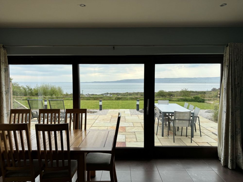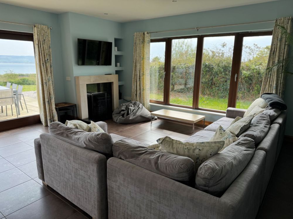 The very large living space is all open plan, incorporating the kitchen, dining area and sitting room. There are doors/windows to three sides with panoramic views of the sea, Lough Foyle and the Antrim coast. Sliding doors lead to the large deck area and landscaped garden.