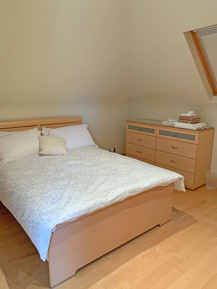 Bedroom 3: double bed (x2), en suite - mountain and garden view