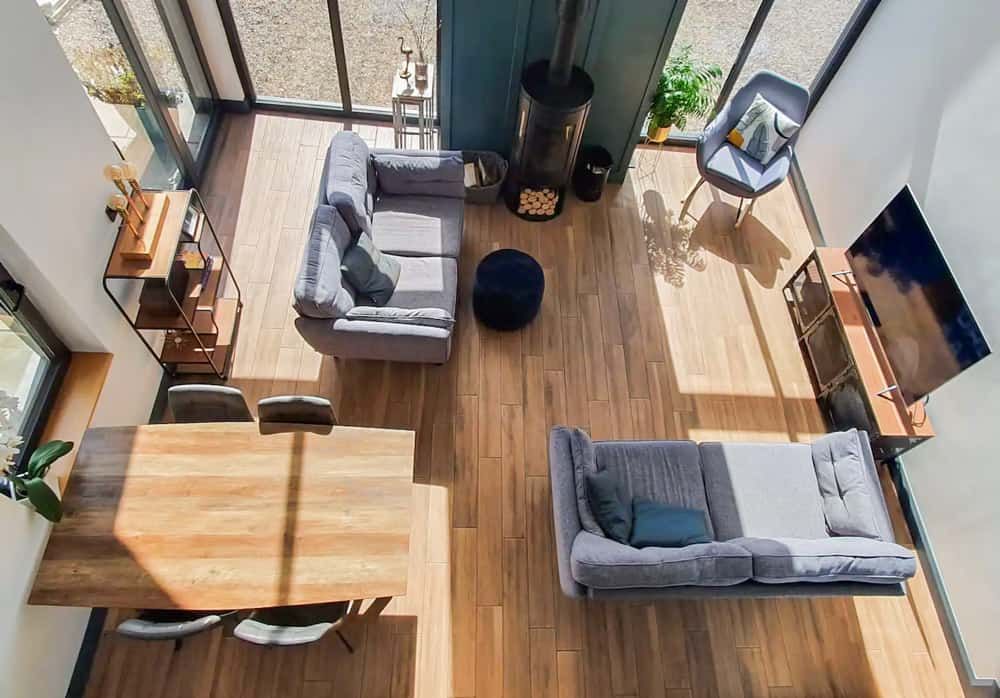 There is also an office area on the house mezzanine with a desk and chair for remote working with good wifi connection, ideal for anyone who needs to squeeze in some work or study during their stay.