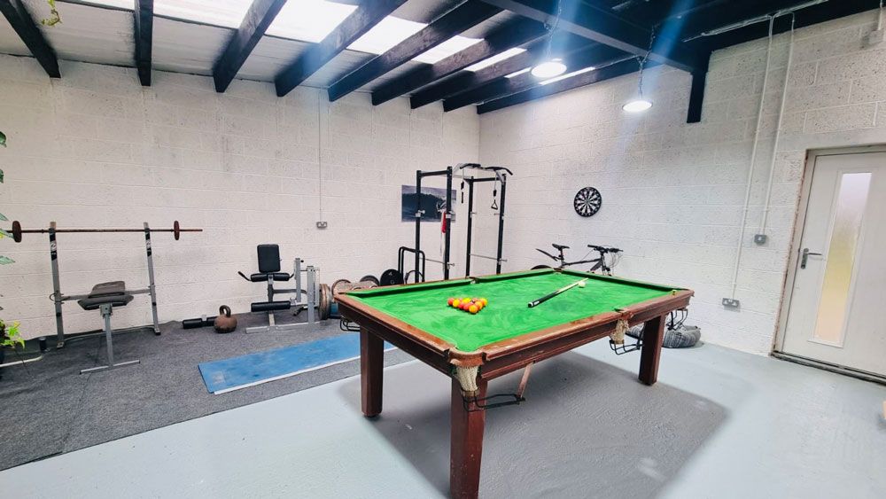 The gardens are landscaped to the front and being designed piece by piece at the rear. There is a sandpit for children to play in and a clothesline for drying clothes etc. A newly built games room houses a snooker table, dart board, ping pong table and some gym equipment. The lockable unit can also be used to store bikes, surf boards, golf clubs etc