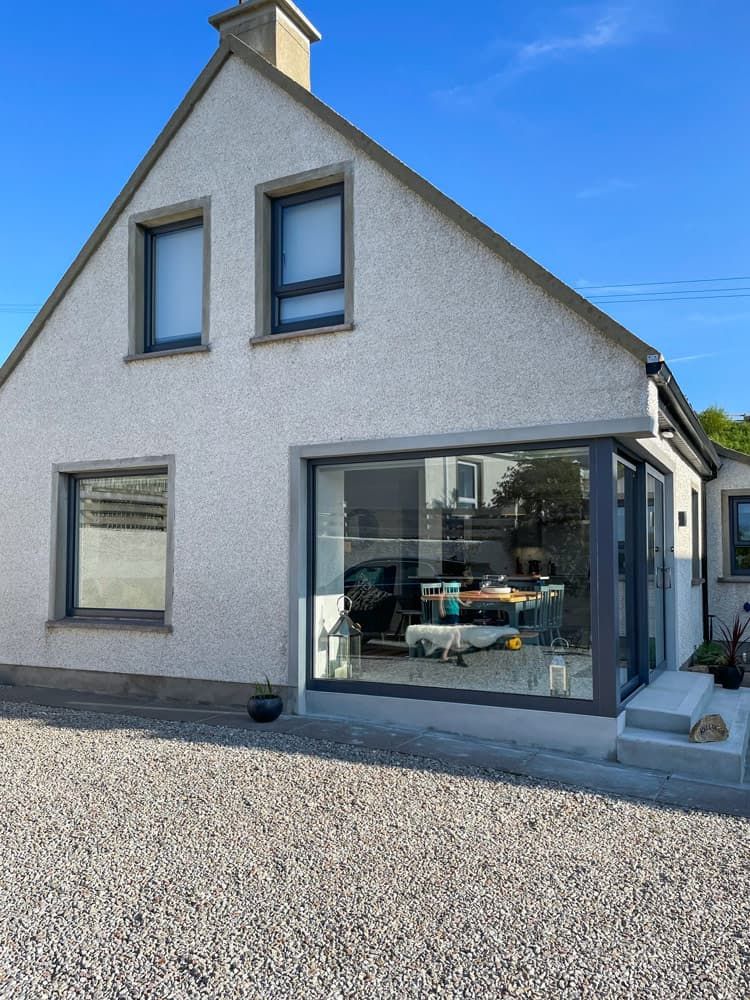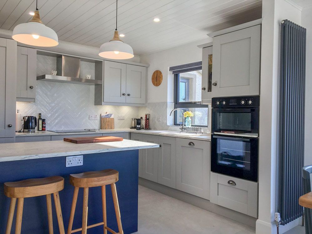 Large modern open plan kitchen, living and dining space with fantastic panoramic sea views over Sheephaven Bay and Dunfanaghy golf course