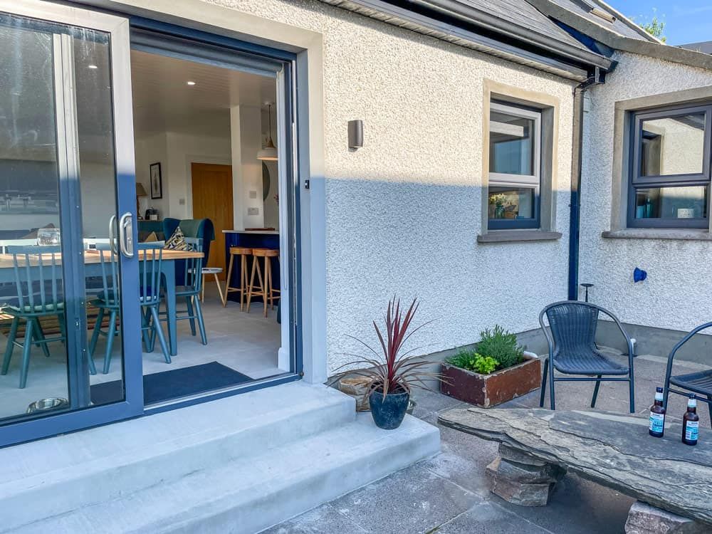 Killycor - Dunfanaghy - is a modern, recently renovated holiday home with all modern conveniences. The home benefits from fantastic panoramic sea views over Sheephaven Bay from the open plan living and kitchen area, upper floor bedroom and outdoor patio. The cottage is situated on an elevated site also overlooking Dunfanaghy Golf Links. Killycor is very conveniently located for access to Dunfanaghy town and Marble Hill beach and is within walking distance of Portnablagh harbour, Killahoey beach and the golf course.