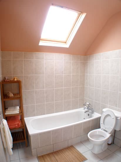 The well finished bathrooms in the holiday homes are adjacent to the bedrooms on the first floor. The high ceiling give a wonderful sense of space - this feature applies to all the upstairs rooms.