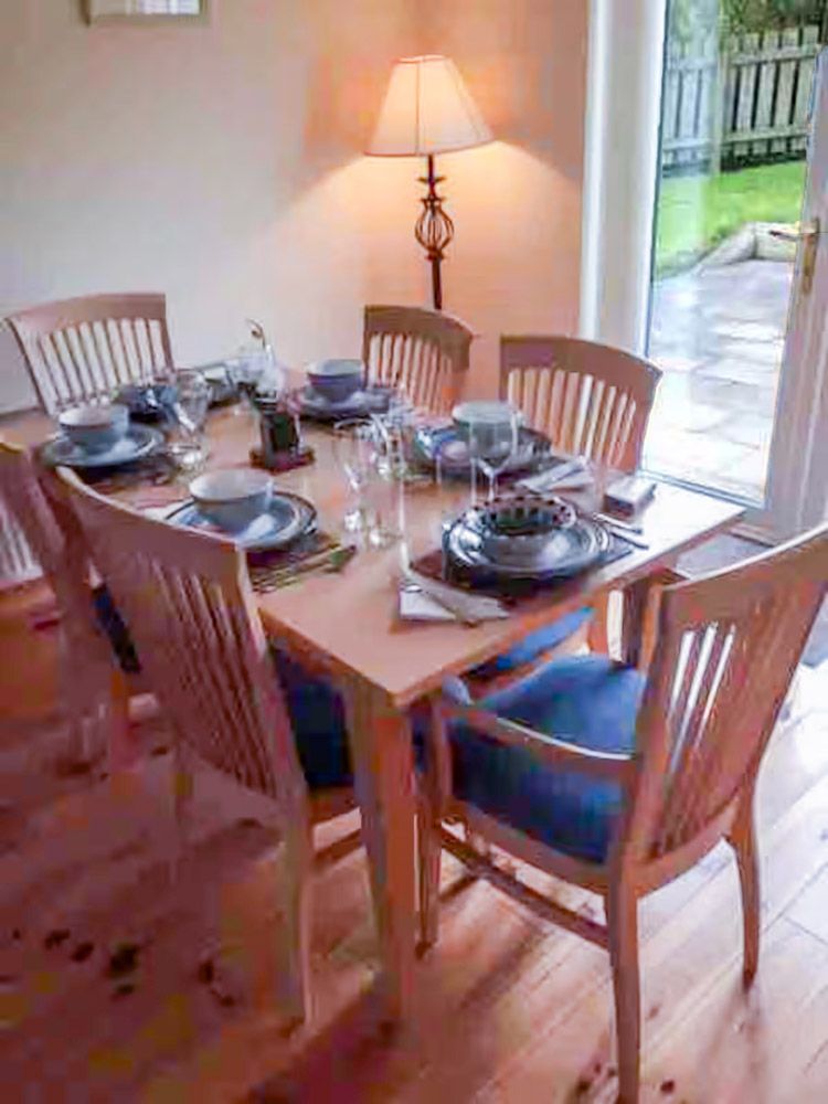 The living/dining area is based around an open fire in cosy surroundings with a view out to Portsalon golf course and Ballymastocker Bay beyond. The open plan space seemlessly links to living, dining and kitchen spaces.