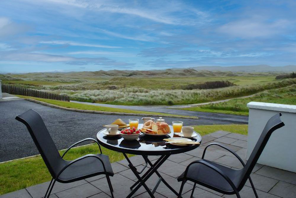 Rosapenna Golf Links - This holiday home is situated right on the golf course, with a garden to both the front and rear of the house. Patio and BBQ area to the front of the house overlooking the golf course.