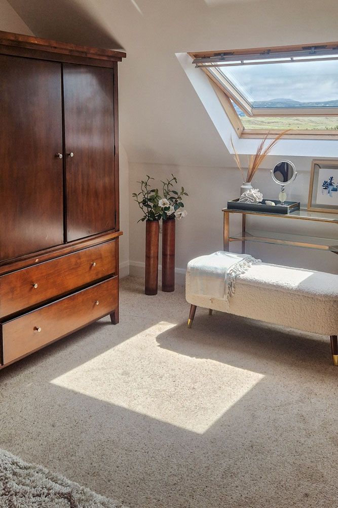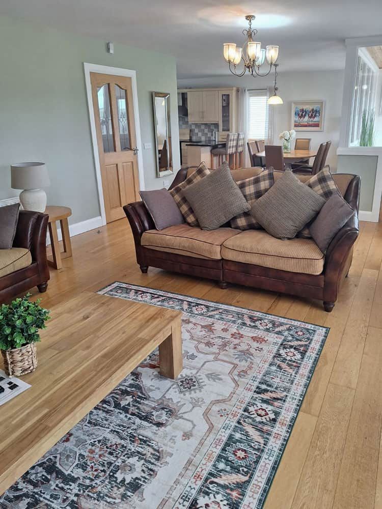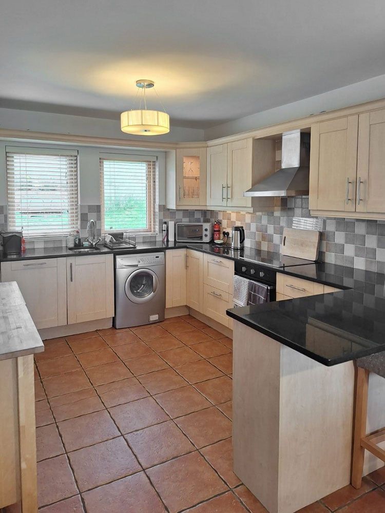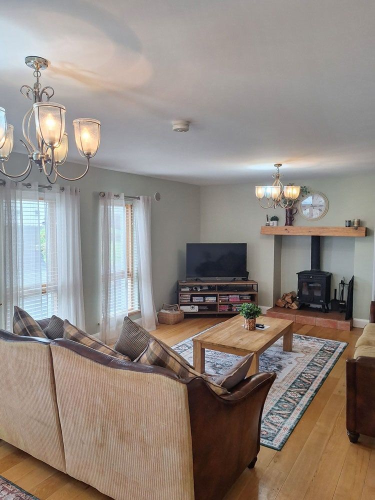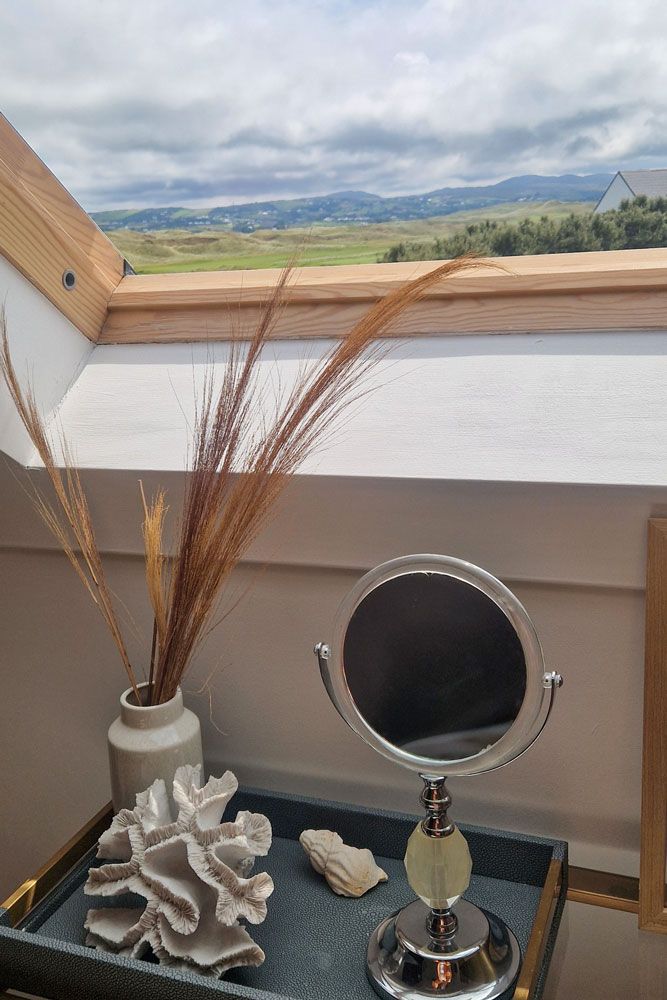 A large open plan living area with amazing views of Rosapenna Golf Course with a wood burning stove, dvd library, childrens and adults books, board games, dvd player and satellite TV. 300 Megabit Fibre WiFi ensures fast connectivity to the outside world (if needed!).