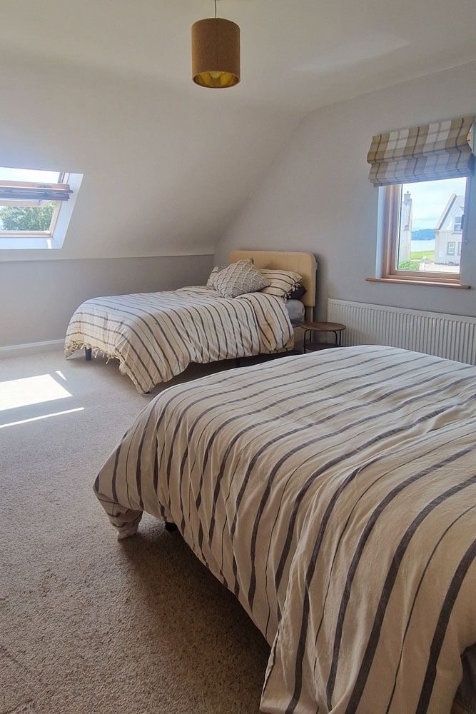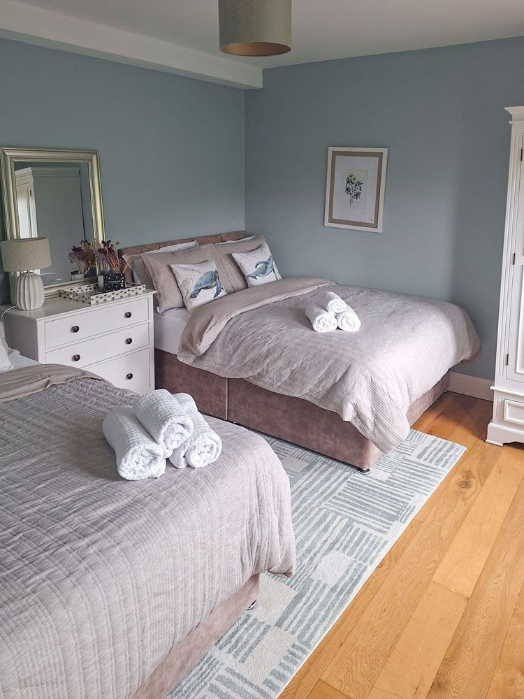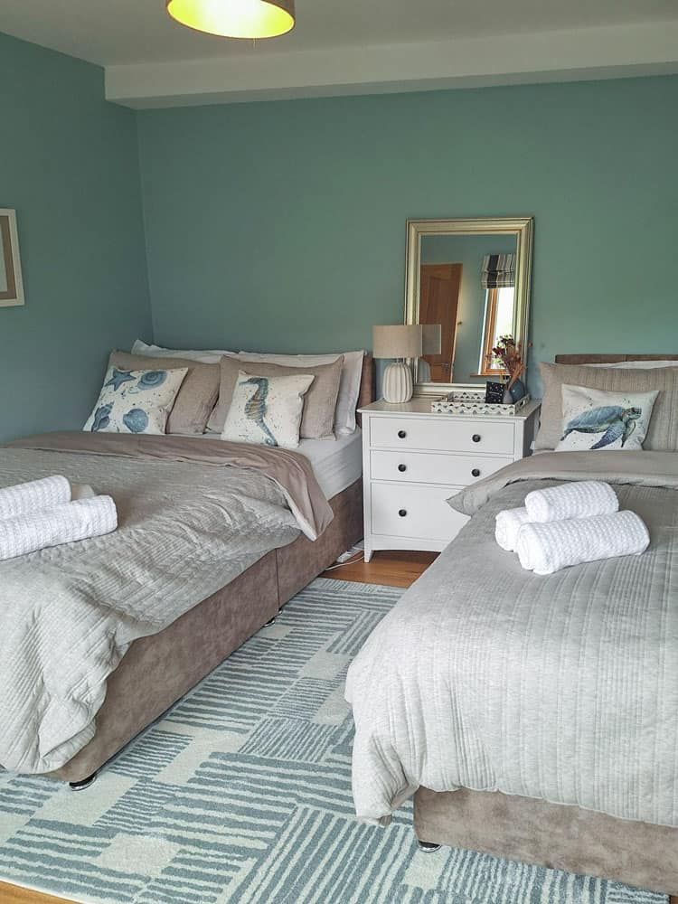 Bedroom 1: Large ground floor room with 2 double beds, sleeping 4 people, ensuite with golf link views