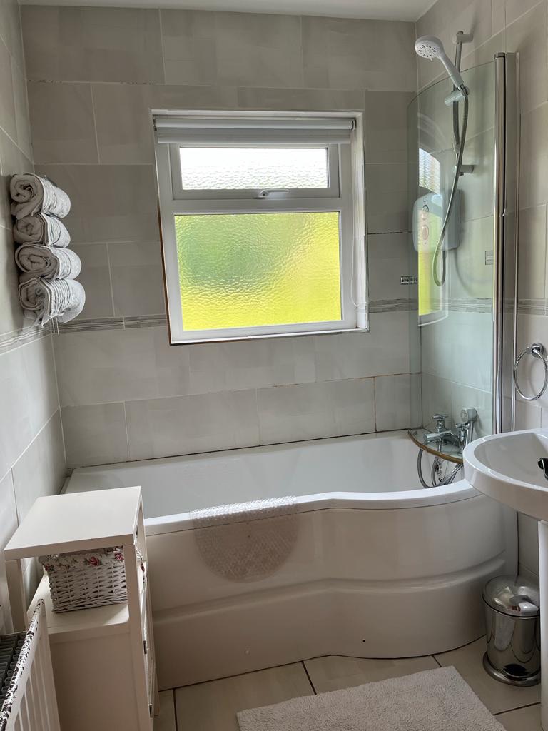The holiday home has a family bathroom with bath and shower and a shower room with sink and wc
