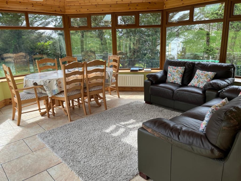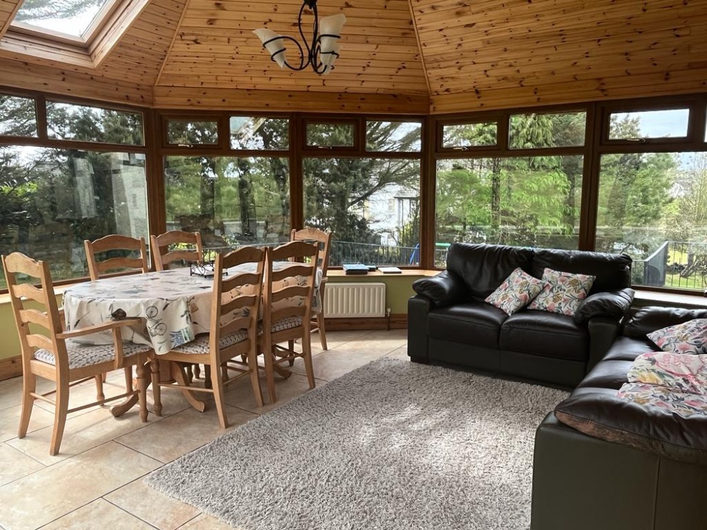 The holiday home has 4 double bedrooms along with a bathroom and shower room. The living room overlooks Dunfanaghy and has an open fireplace. The well-equipped kitchen features a solid fuel stove and opens out to a lovely conservatory style dining and seating area. There are large gardens to the front and rear of the property.