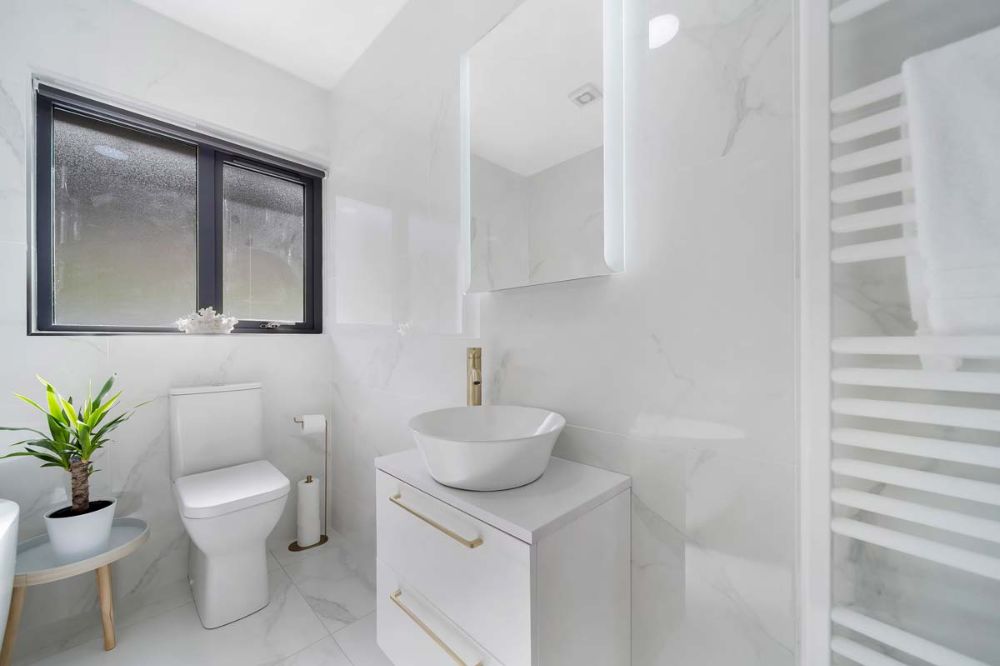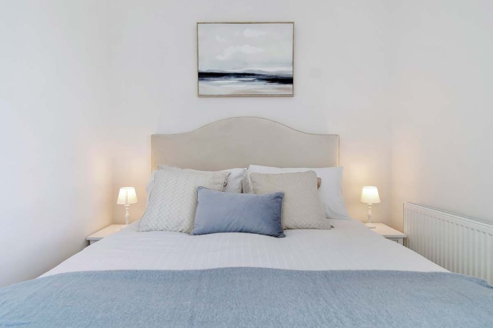 The master suite has a super king bed, walk-in wardrobe and en-suite.