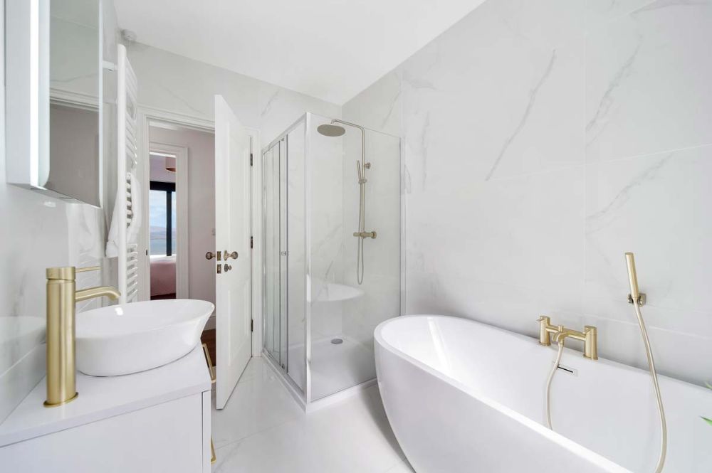 Saltwater House has a unique layout with 3 of the bedrooms having unspoiled sea views and sliding glass doors onto the patio. The master suite has a super-king bed, walk-in wardrobe and en-suite.