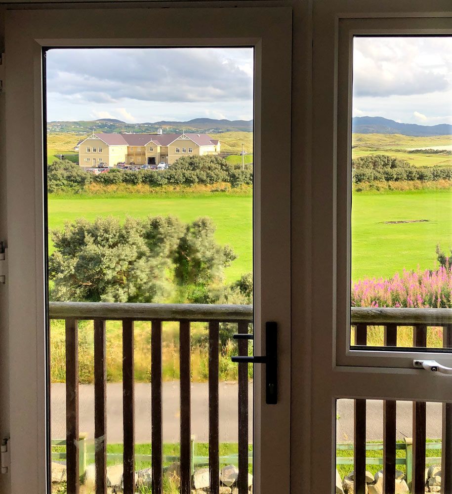 There is a raised but level enclosed decking area at the front of the cottages, looking over the Rosapenna Golf Resort Pavilion and Sandy Hills golf course. There are also uninterrupted views over Tramore Beach which is just a few minutes stroll away. This area provides an ideal space for making the most of the scenery and landscape. It also provides a safe and enclosed space for children to play right outside the house. Outdoor dining set provided.