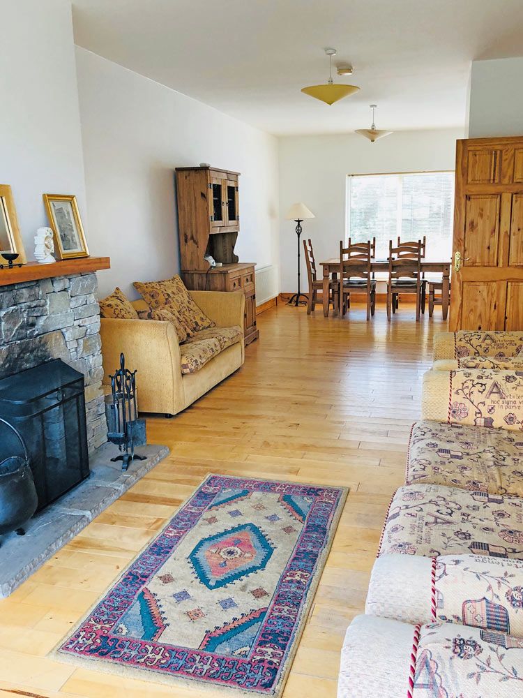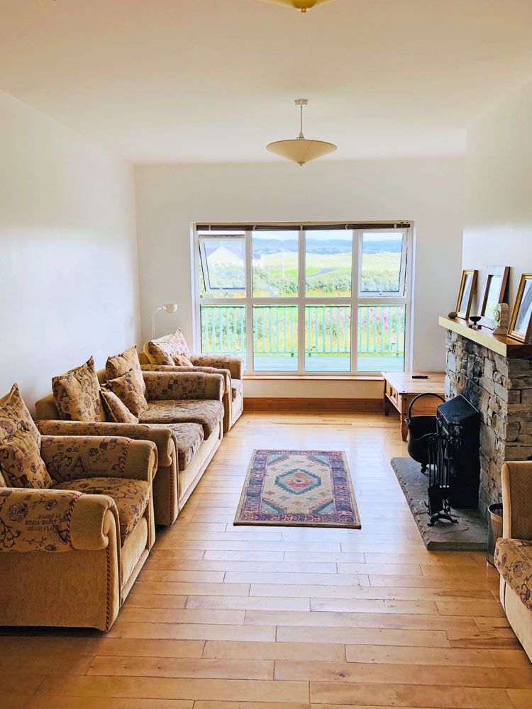 There is ample soft seating for family /groups seating in the living room looking out across Sheephaven Bay.