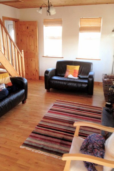 The holiday home has an open plan ground floor. The comfortably furnished living area has a natural wood floor and an open fireplace - turf supplied. To enhance the getaway feel there is no television in the holiday home. However there is a book library, local maps and board games.