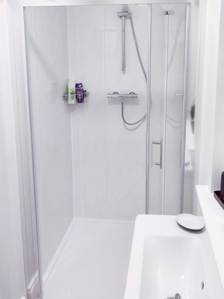A shower room adjoins the main living area.