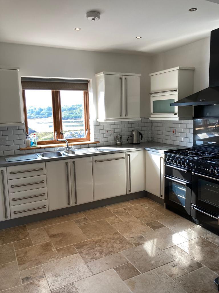 The holiday home nestles into the rugged Gweedore coastal landscape and is designed to take full advantage of the wonderful sea views outside. This is evident in the bright and spacious open plan ground floor featuring kitchen, dining and living spaces.