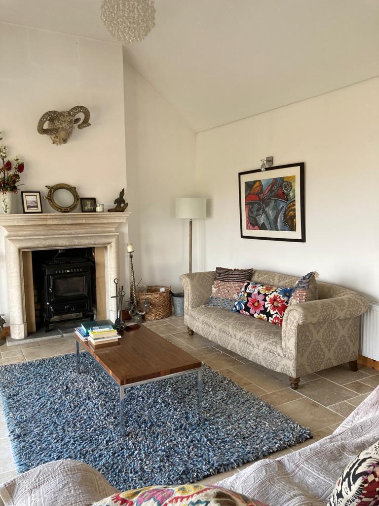 The holiday home has the advantage of two living spaces - one with open fireplace and the other with a wood burning stove. Both area are comfortably furnished and have TVs. The second living space is a bar-games room featuring a vintage bar and a table tennis table.